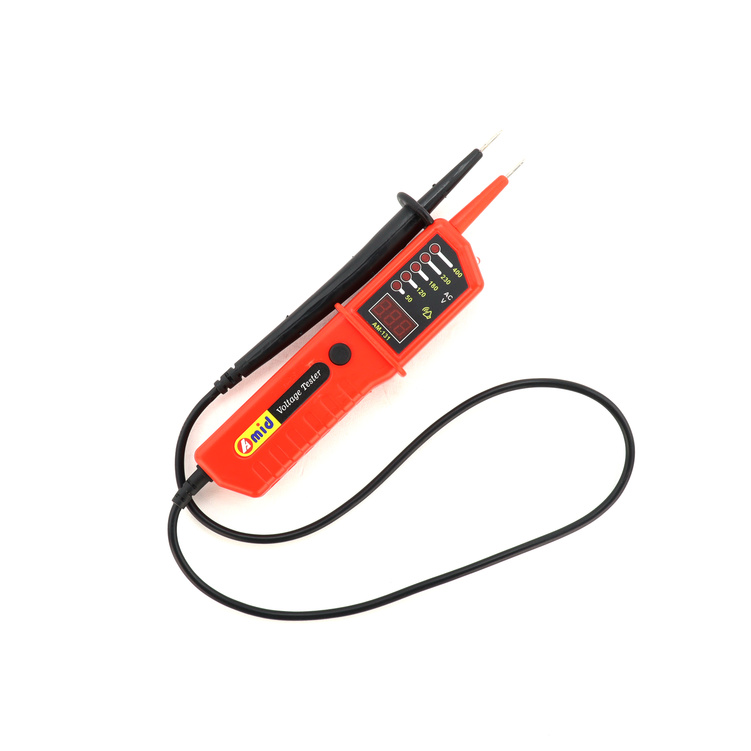 This device performs a reliable test using a two-polar method (phase to neutral or phase-to-phase) and measures the voltage with high accuracy, displaying it on a three-digit LED display.